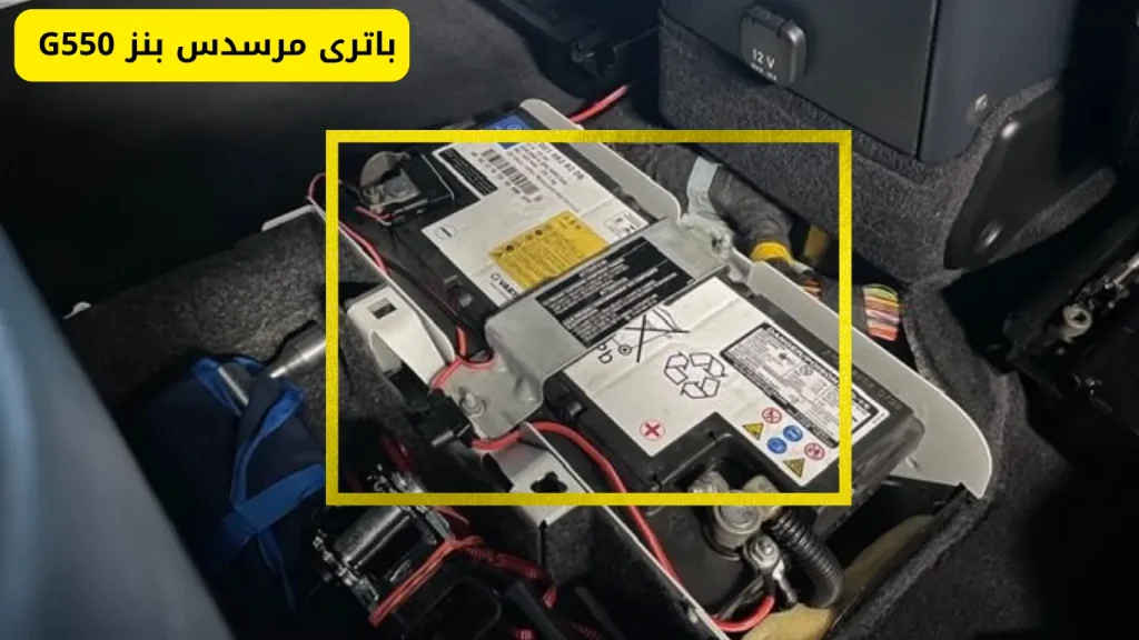 باتری اصلی بنز G550 در قسمت کابین و قسمت میانی کف عقب خودرو قرار دارد. در تصویر زیر میتوانید مشاهده کنید: