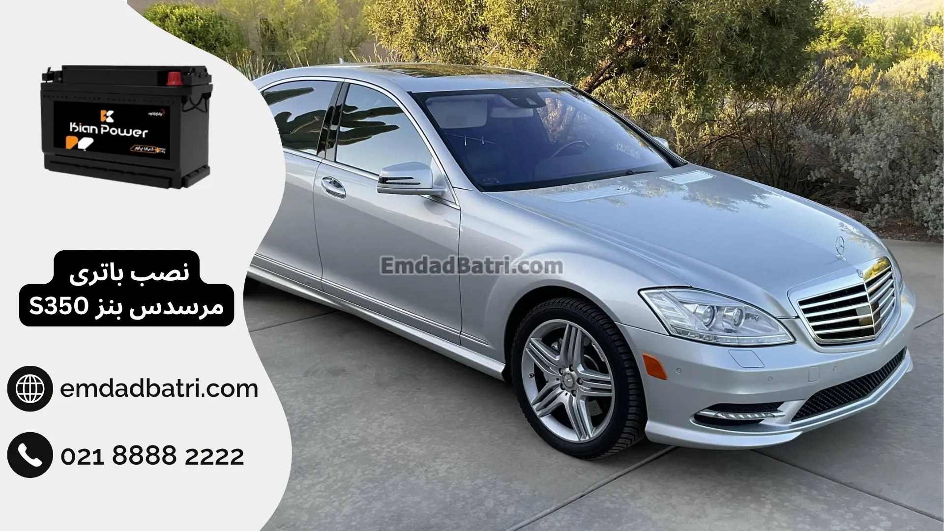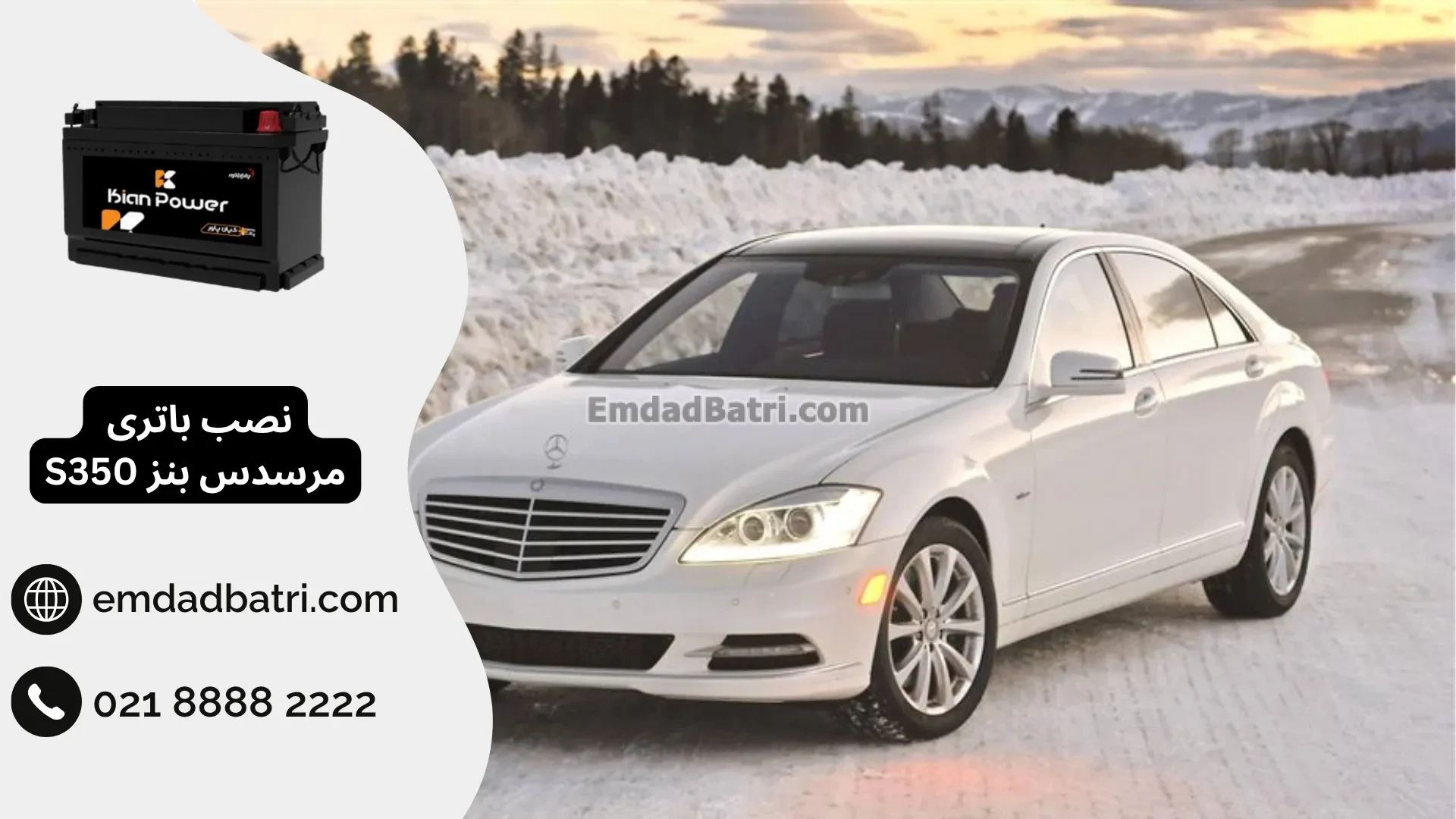 باتری بنز S350 در قسمت جلوی ماشین و در داخل کاپوت آن قرار دارد. این باتری در ابعاد 40*18*24 سانتیمتر می‌باشد. بیشترین آمپری که برای باطری در خودرو بنز S350 در نظر گرفته می‌شود 100 آمپر است. طول عمر باتری بنز S350 تا حد زیادی به نوع آن و کارکرد مصرف کننده بستگی دارد. میزان عمر باتری در اصل به نوع مصرف شما و شرایط اقلیمی منطقه شما بستگی دارد و ممکن است یک باتری یک سال عمر و همان باتری در خودروی دیگر ۳ سال عمر کند. باتری در مناطق گرمسیر و مسیر های پرترافیک زودتر کیفیت خود رااز دست میدهد. بررسی‌های تجربی نشان داده است به طور معمول طول عمر مفید باطری بنز S350 حدود ۲ تا ۳ سال است.