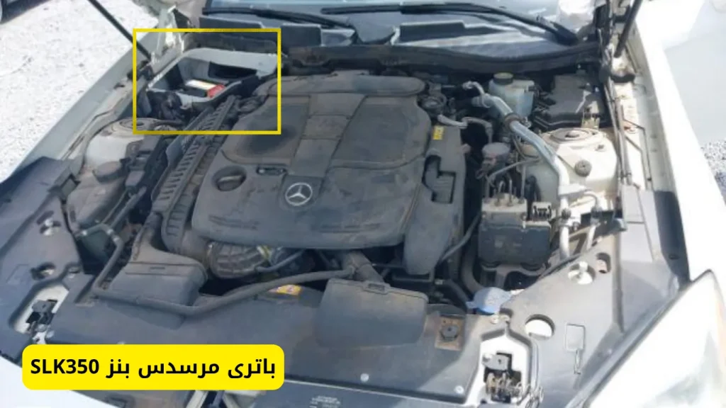باتری این ماشین در قسمت پیشرانه (کاپوت جلو) قرار دارد. در تصویر زیر میتوانید محل قرارگیری باتری را مشاهده نمایید: