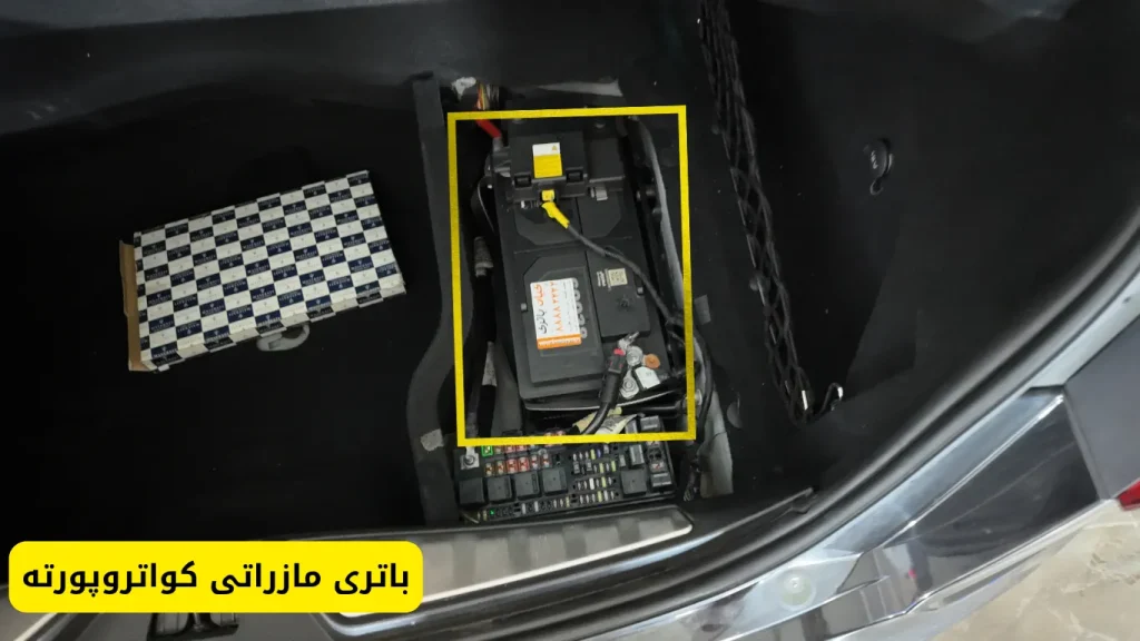 باتری اصلی مازراتی کواتروپورته در سمت راست صندوق عقب قرار دارد.