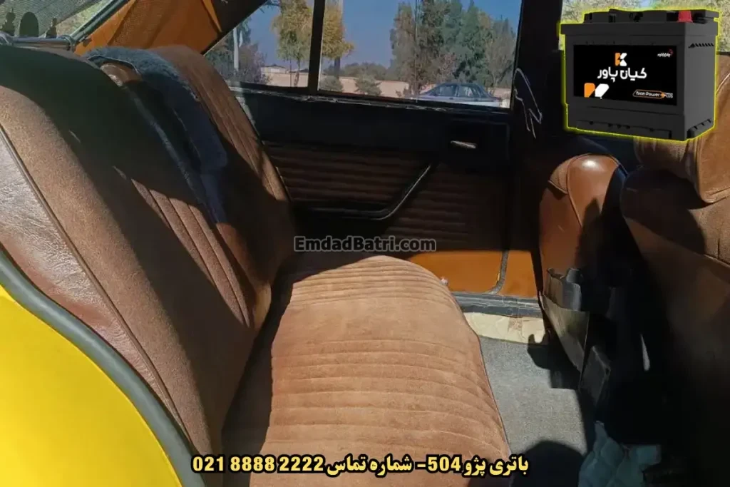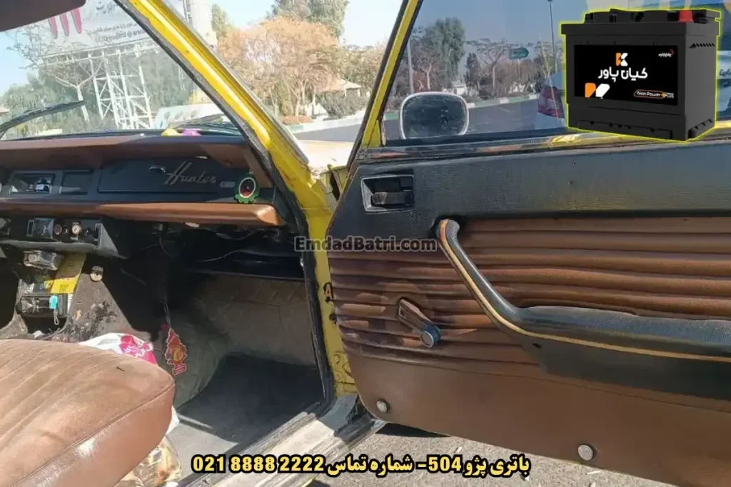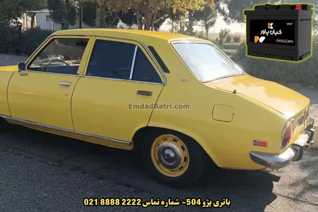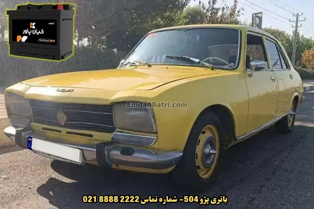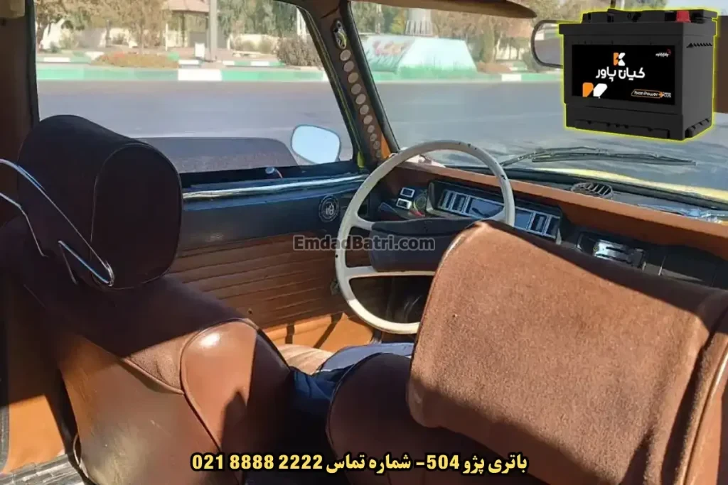 باتری خودرو پژو 504 در داخل کاپوت و در قسمت جلوی خودرو نصب شده است که این محل دسترسی آسانتری برای بررسی و تعویض باتری فراهم میکند.