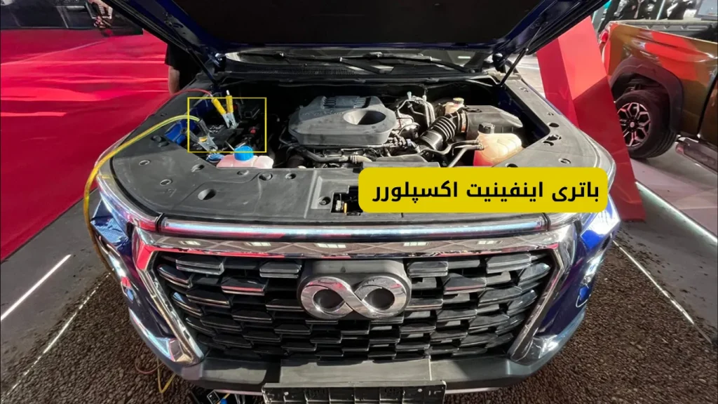 همانطور که در شکل زیر مشاهده میکنید، باتری ماشین اینفینیت اکسپلورر در محفظه موتور نصب میشود.