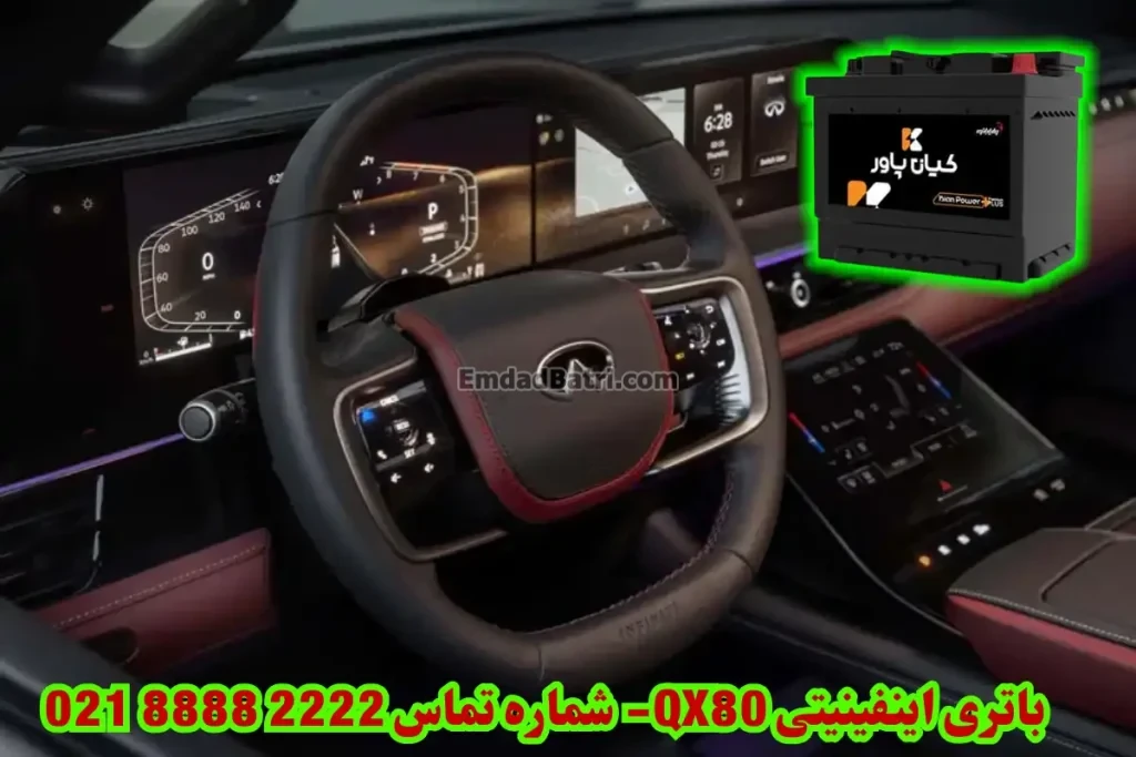 باتری در اینفینیتی QX80 نقش کلیدی در عملکرد خودرو دارد، به‌ویژه به دلیل موتور V8 پرمصرف و تجهیزات الکترونیکی پیشرفته: