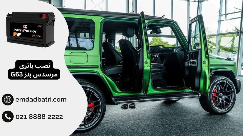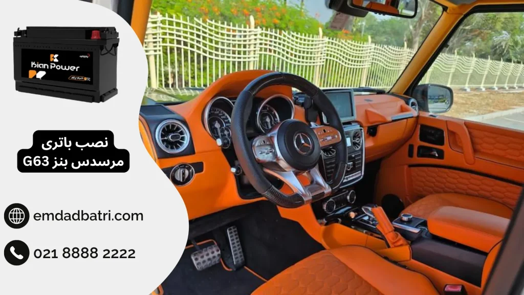 باتری اصلی بنز G63 در قسمت کابین و قسمت میانی کف عقب خودرو قرار دارد. در تصویر زیر میتوانید محل قرارگیری باتری را مشاهده کنید: