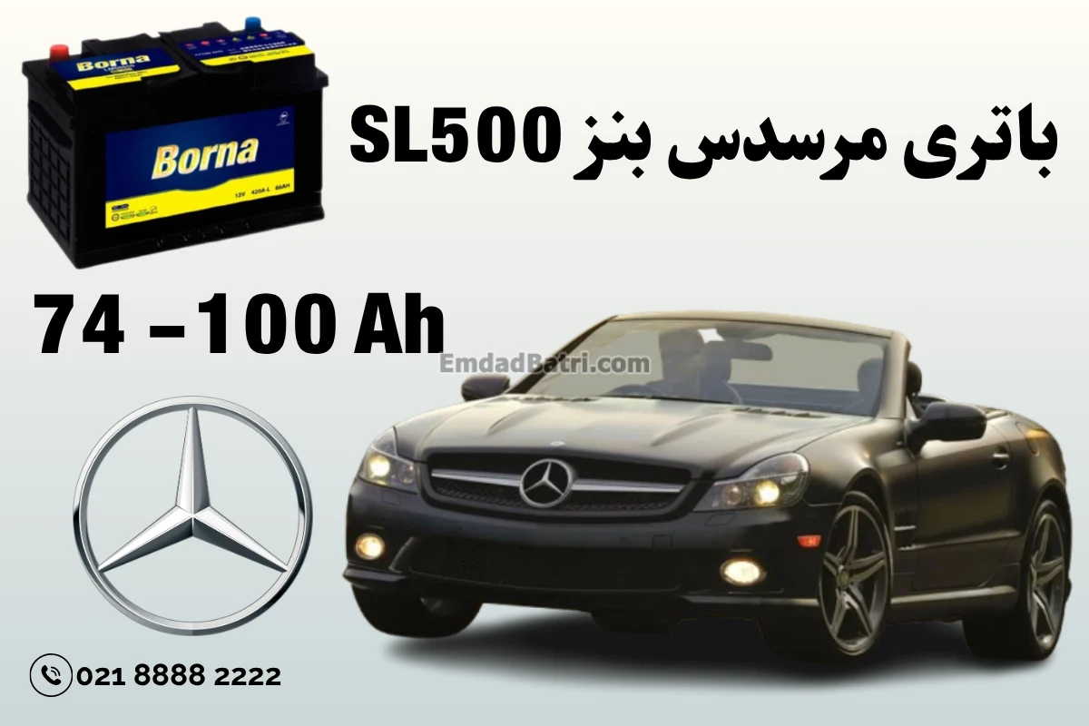 مشخصات باتری فابریک بنز SL500: 80 آمپر 12 ولت پایه کوتاهقطب چپ – قالب L4 مشخصات باتری جایگزین: 74 آمپر 12 ولت پایه کوتاهقطب چپ – قالب L3 100 آمپر 12 ولت پایه کوتاهقطب چپ – قالب L5 تکنولوژی باتری قابل نصب روی این خودرو: باتری سربی کلسیمی Lead-calcium که بیشتر باتری های تولید در