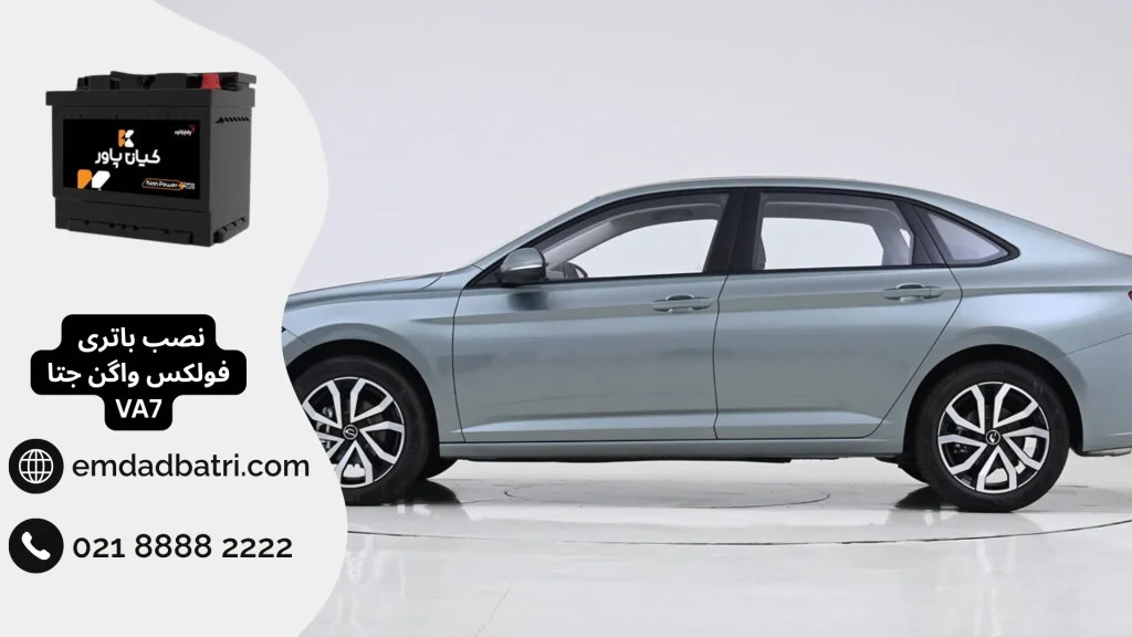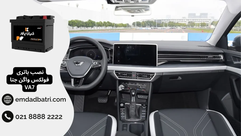 باتری فولکس واگن جتا VA7 در قسمت پیشرانه (کاپوت جلو) نصب شده است. این جایگاه به گونهای طراحی شده که دسترسی به باتری آسان باشد، اما دارای پوشش محافظ است که برای بررسی یا تعویض باید برداشته شود. هنگام نصب باتری جدید، حتماً به مشخصات مهمی مانند پایه کوتاه بودن، قالب L3 و قطب چپ بودن توجه داشته باشید تا باتری بدون مشکل در جای خود قرار گیرد.