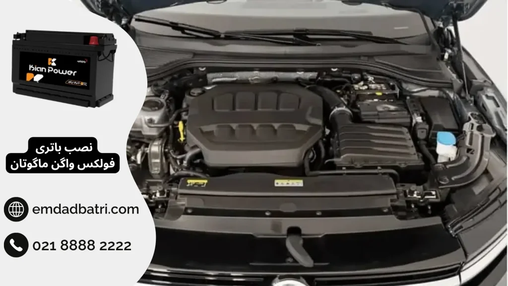 باتری ۱۲ ولت خودرو فولکس واگن ماگوتان در محفظه موتور و دقیقاً در سمت چپ خودرو (سمت راننده) قرار دارد. این محل قرارگیری، دسترسی مناسبی را برای بررسی، شارژ و تعویض باتری فراهم میکند. البته توصیه میشود به دلیل حساسیت سیستمهای برقی، عملیات تعویض باتری توسط تکنسینهای مجرب و با رعایت اصول ایمنی انجام شود.