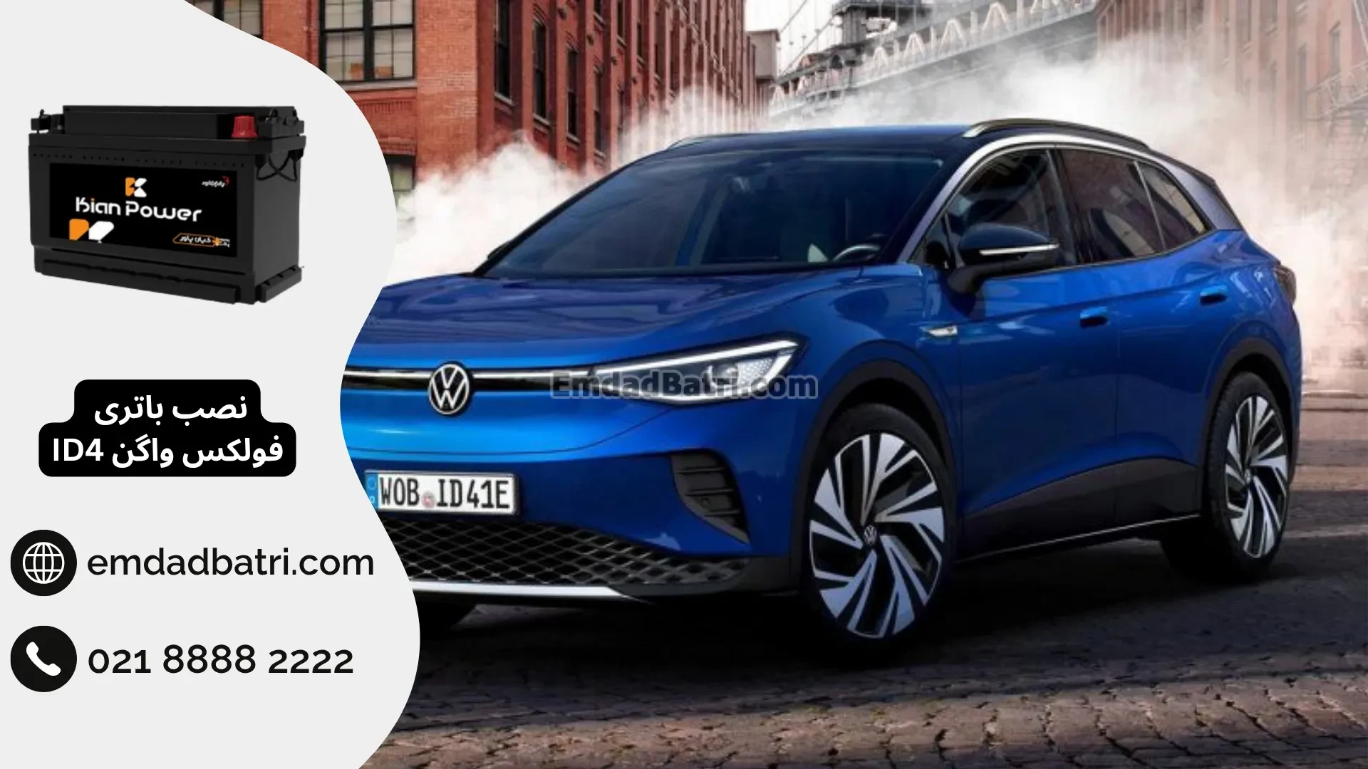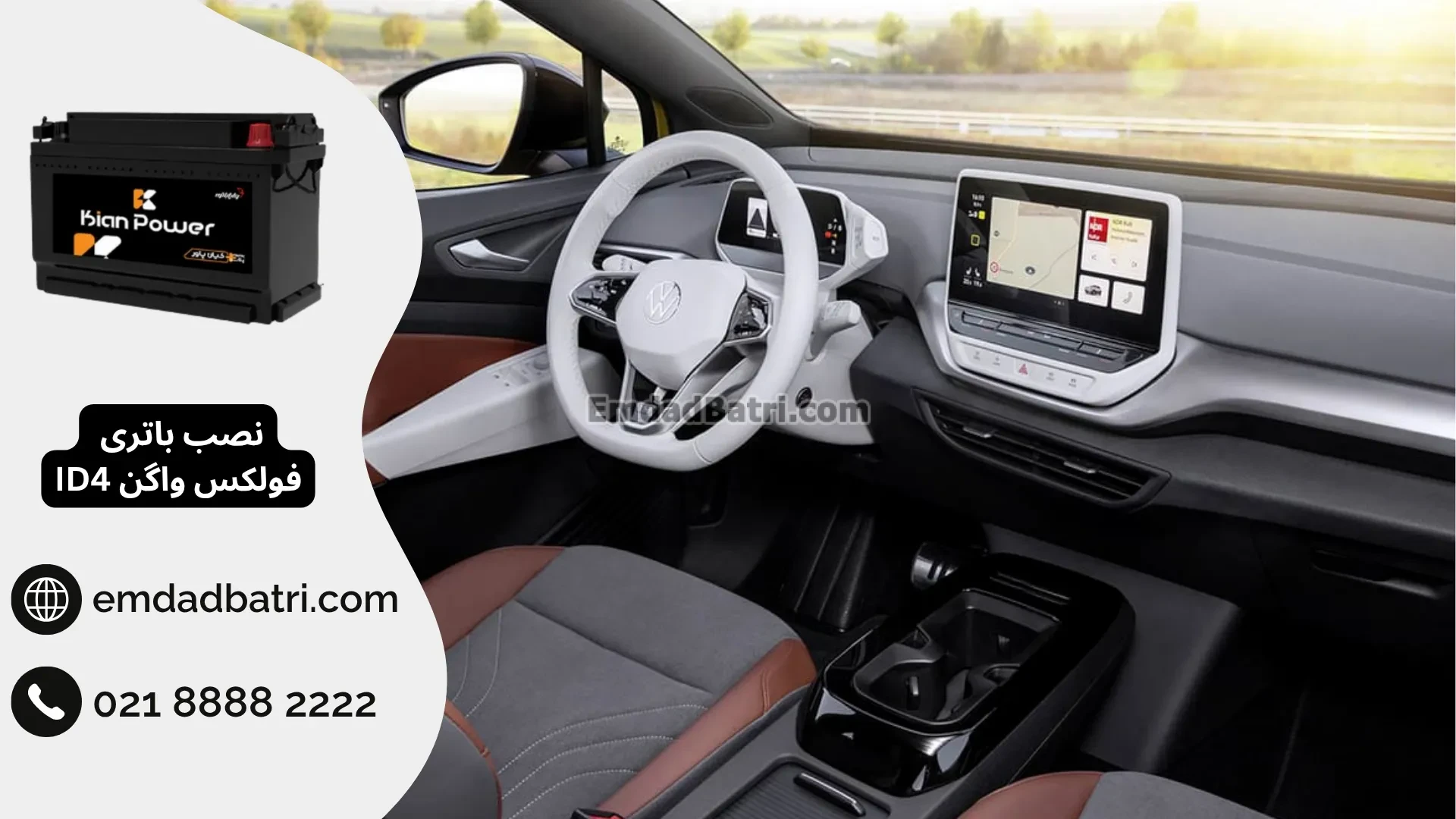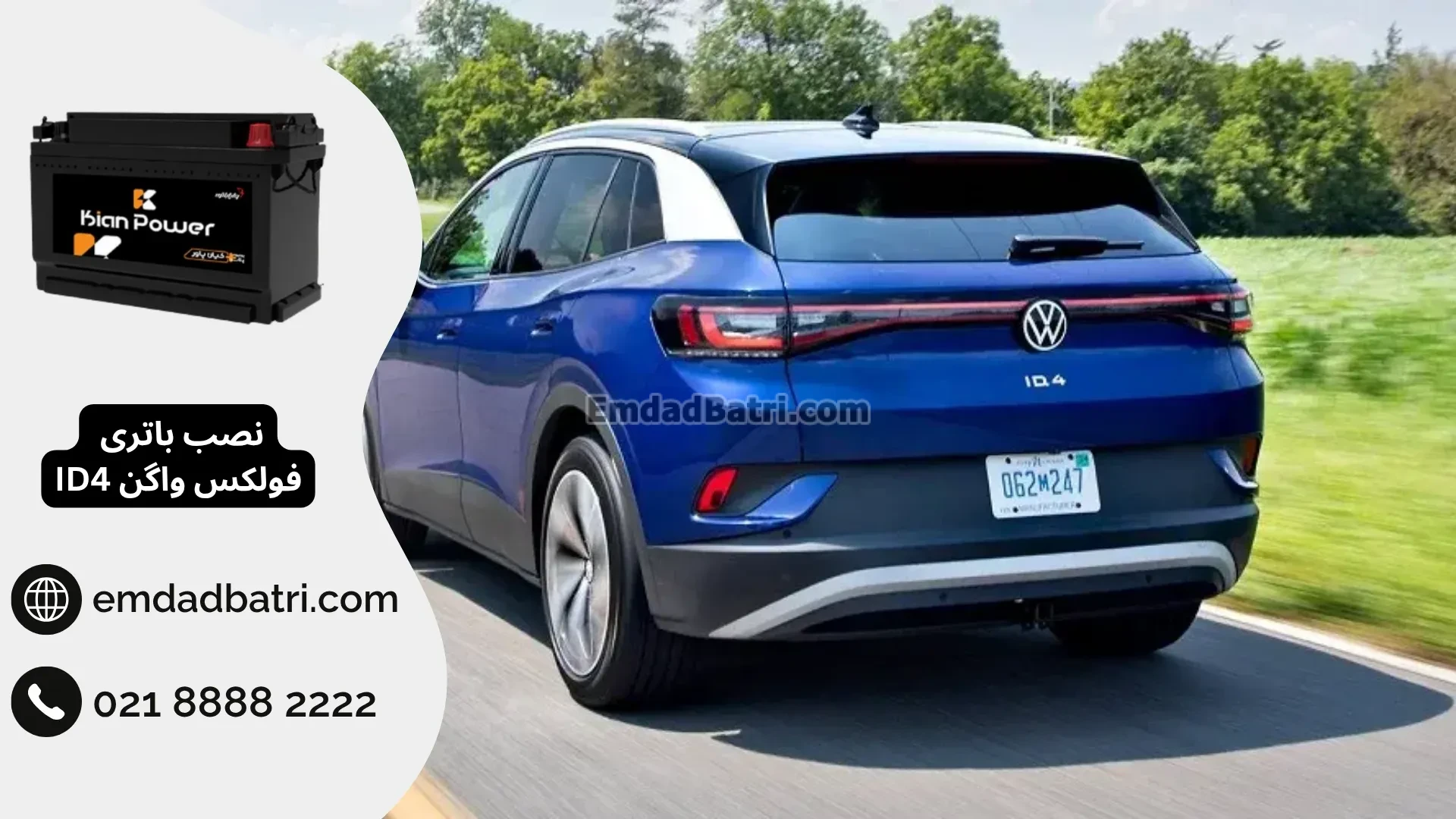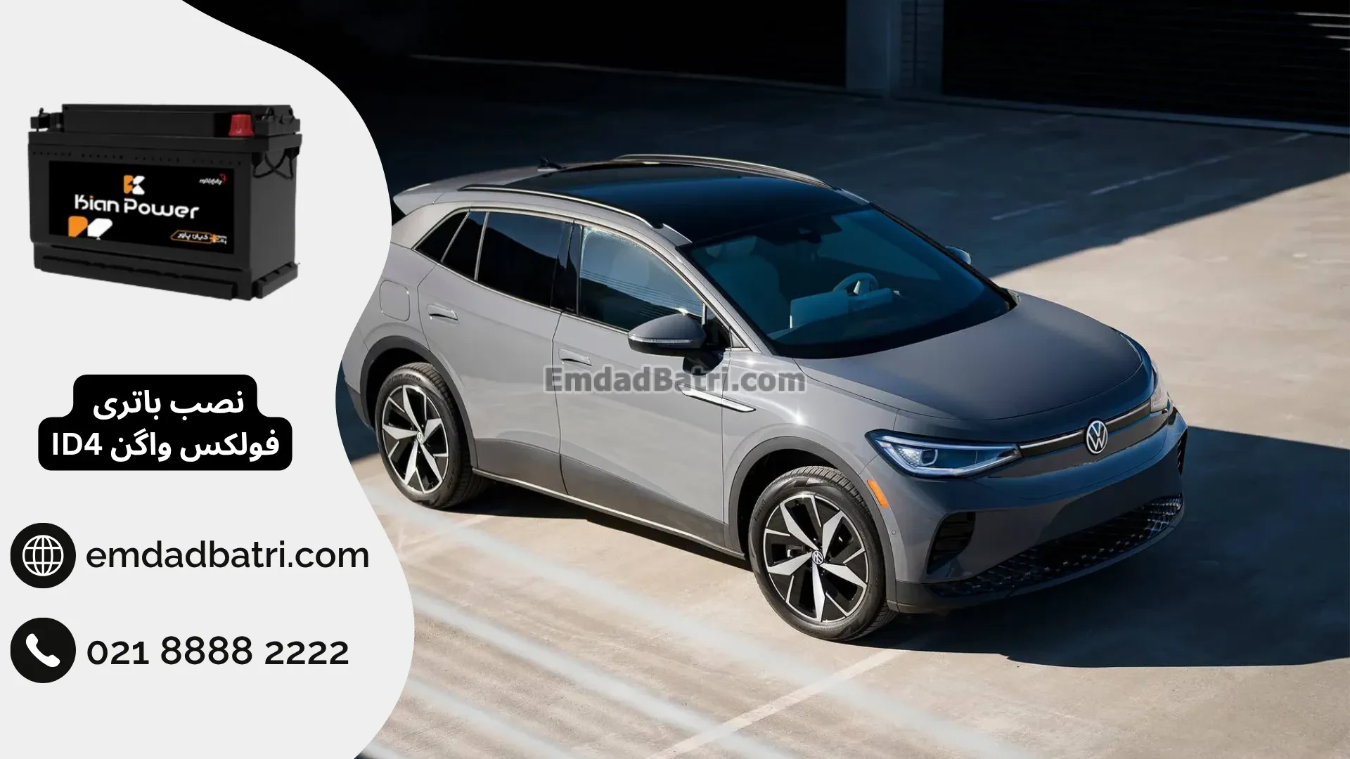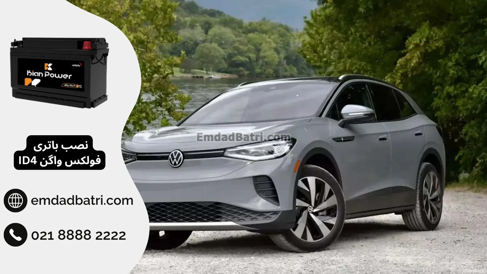 باتری ۱۲ ولت فولکس واگن ID.4 در زیر کاپوت جلو، سمت چپ (راننده) و در کنار تجهیزات الکترونیکی اصلی قرار دارد. به دلیل طراحی خاص و ایزوله بودن محفظه موتور، دسترسی به باتری نسبتاً ساده است ولی توصیه میشود عملیات تعویض حتماً توسط افراد متخصص و با رعایت نکات ایمنی انجام شود، بهویژه در خودروهای الکتریکی که ولتاژ بالا در سایر بخشها وجود دارد.