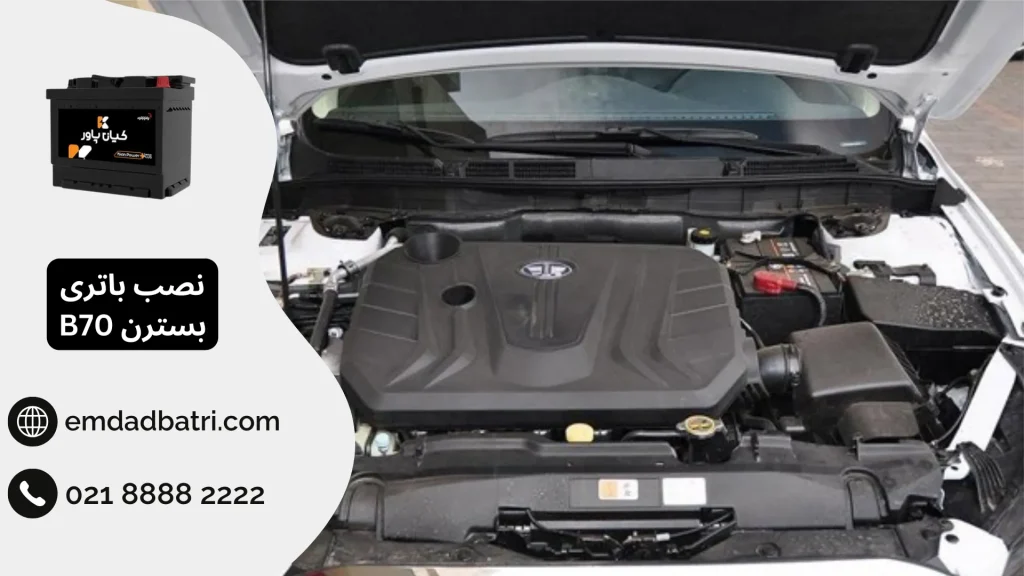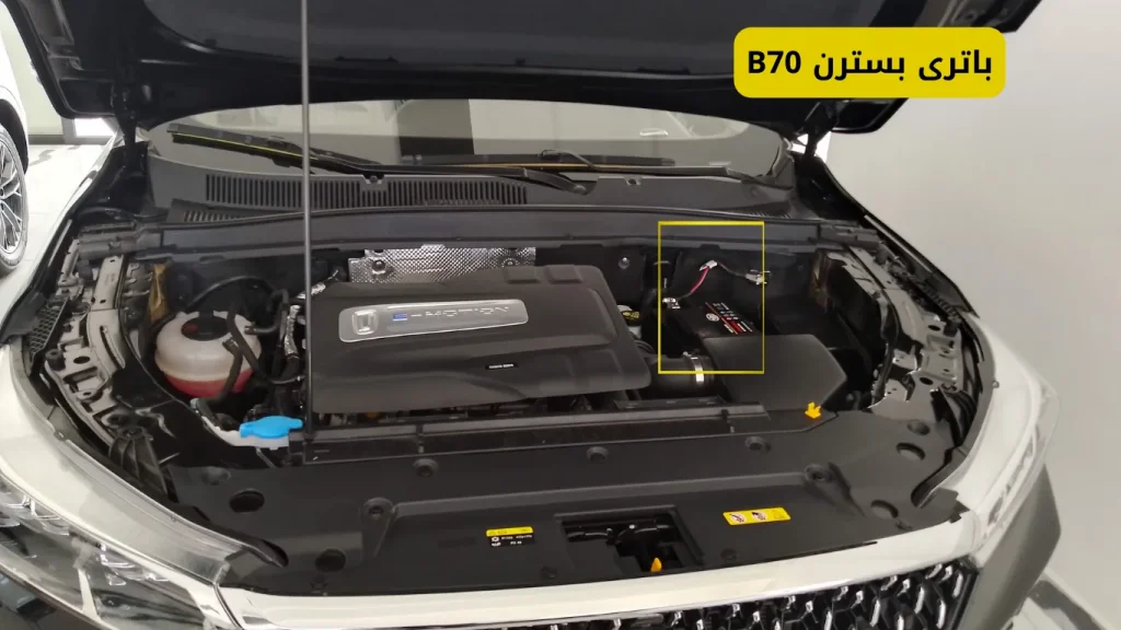 همانطور که در شکل زیر مشاهده میکنید، باتری ماشین بسترن B70 در محفظه موتور نصب میشود.