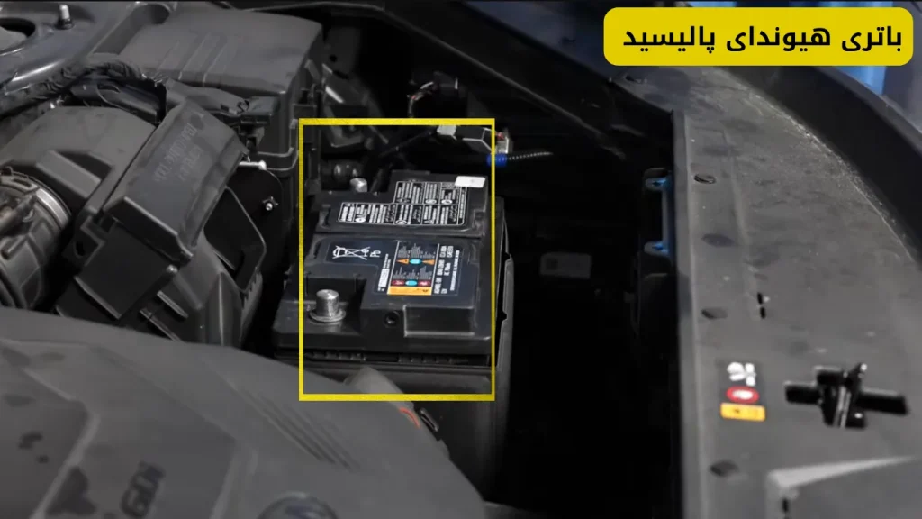 همانطور که در شکل زیر مشاهده میکنید، باتری ماشین هیوندای پالیسید در محفظه موتور نصب میشود.