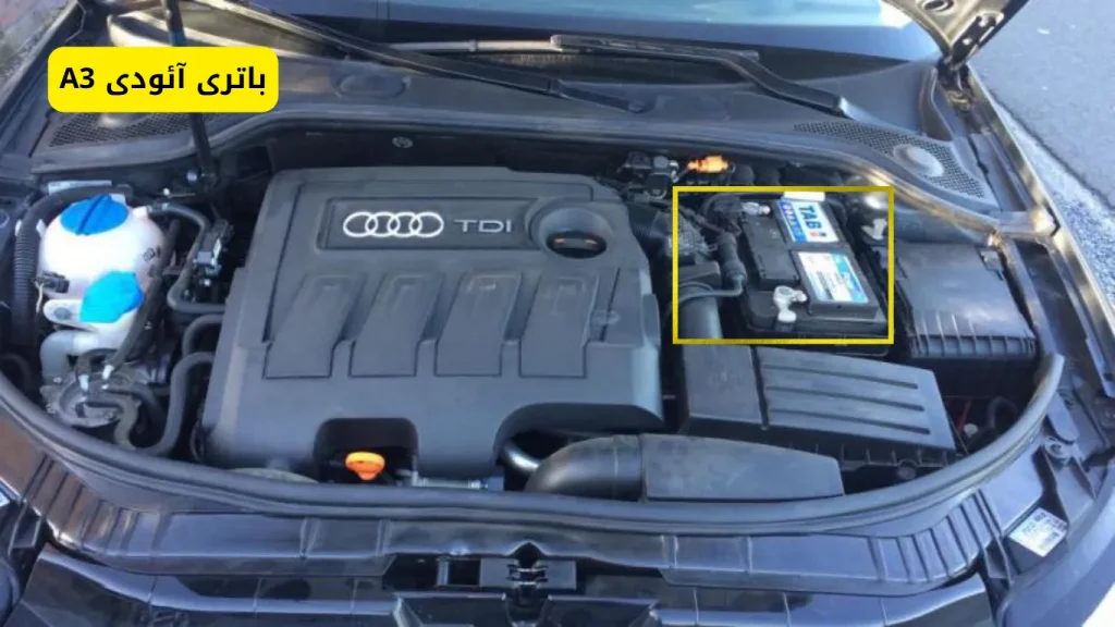 باتری این ماشین در قسمت پیشرانه (کاپوت جلو) قرار دارد. در تصویر زیر میتوانید محل قرارگیری باتری این خودرو را مشاهده نمایید: